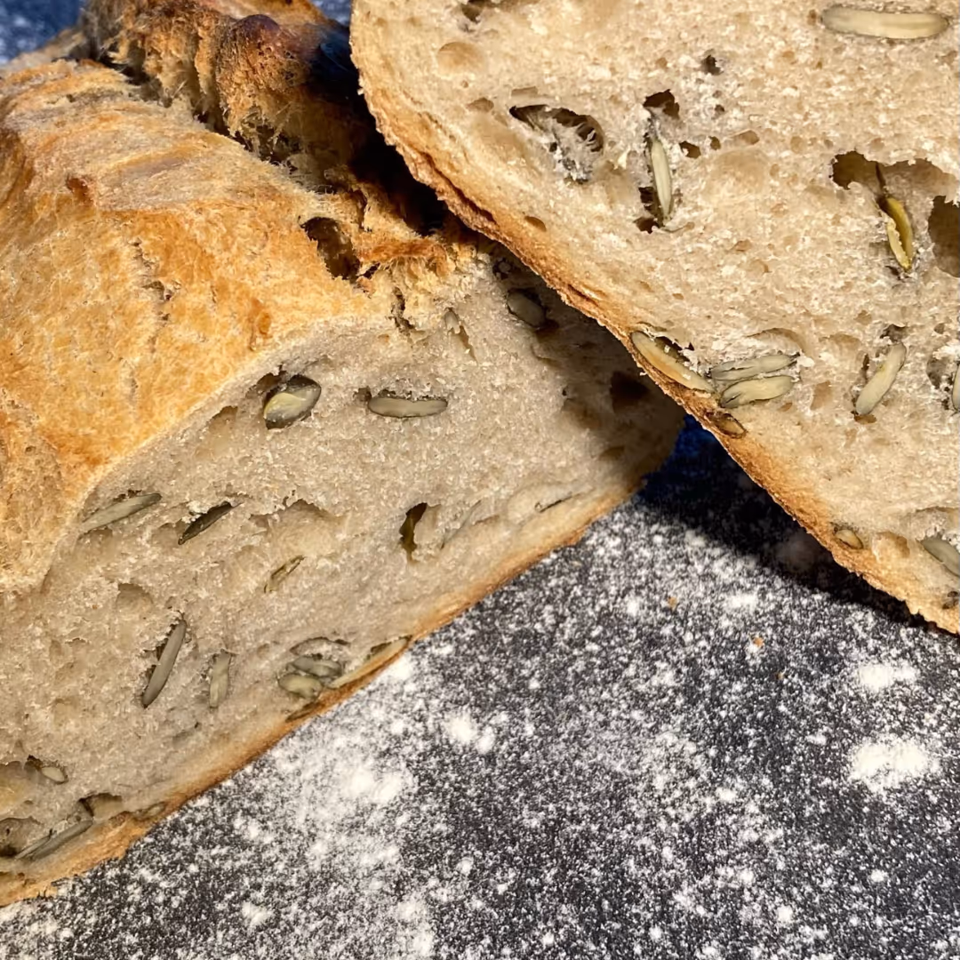 Pain pauvre en Gluten et riche en protéine, réalisé avec de la farine complète cela fait de lui un pain très digeste